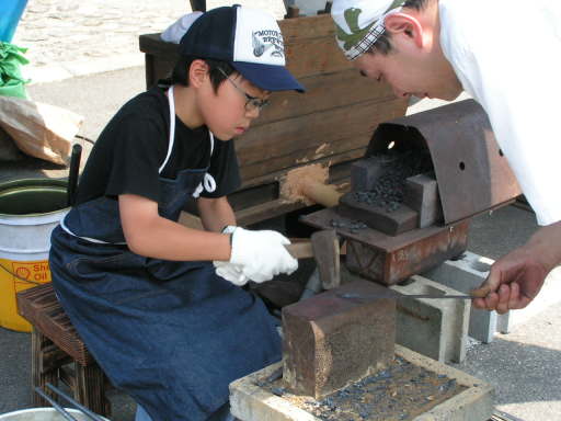 私達は鍛冶屋の実演をし、和釘などの実演と1輪差しの製作体験をしました。
