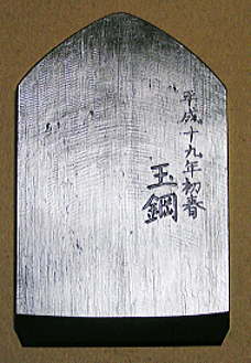 *玉鋼の鉋ついて (07.9.8) 私の先生の知っている人より玉鋼の鉋を頼まれ、 私に注文を頂きましたが、玉鋼が無いため先生から 刃物用に鍛錬して頂き、(C量を刃物用に) 影打ちも含み2枚作ってみました。 製作には、全ての工程で炭を使いましたが 炉が下吹き(炉坪しきで横吹きではない)の為 炭の消費が著しく激しく、炭を切っても切っても 間に合わない程でした。 完成させた1枚は注文された方に、もう1枚は 切れ味を試していただく為に近くの木工職の方に を預けしています。 また、報告したいと思っております。 |