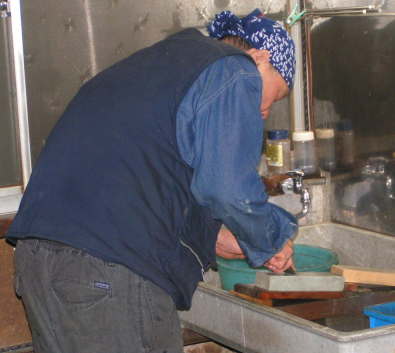 グラインダーレースで荒・中研ぎをする