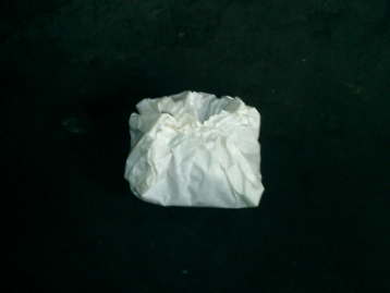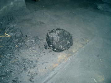 和紙でくるみ、わら炭でまぶしたものです